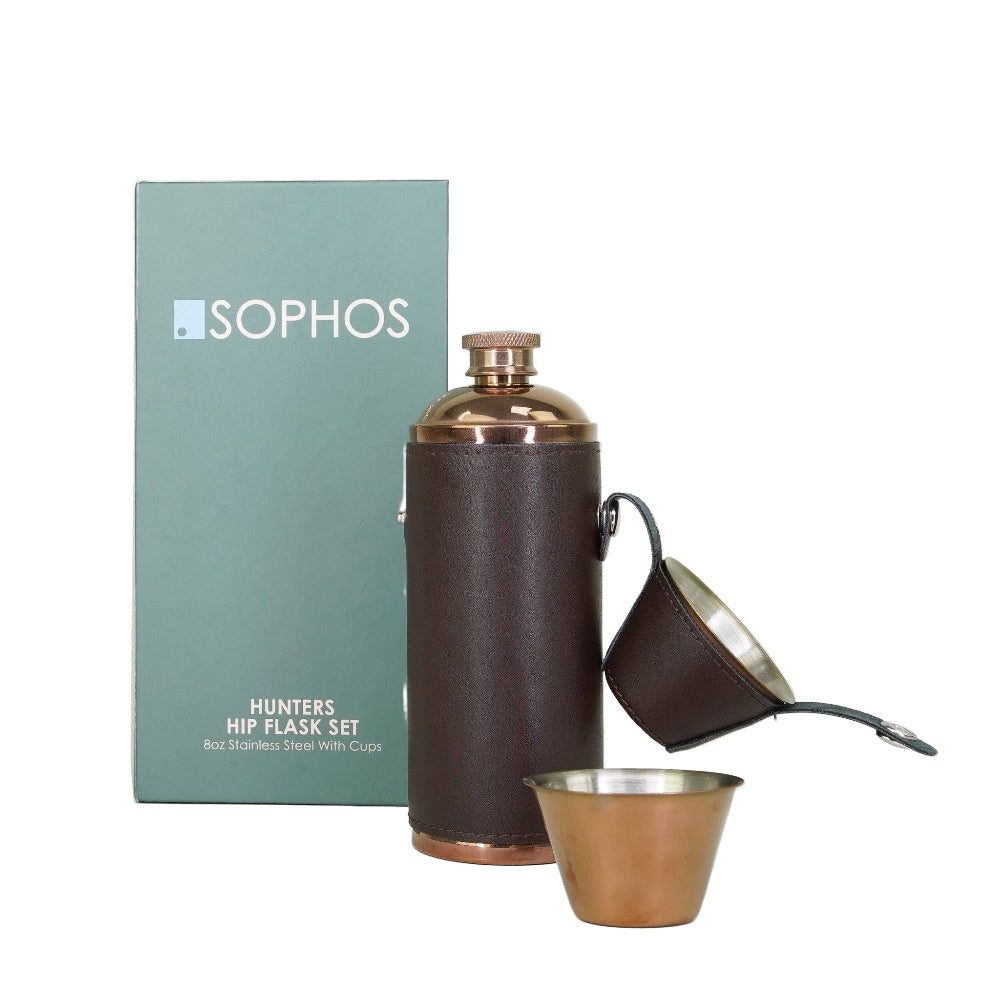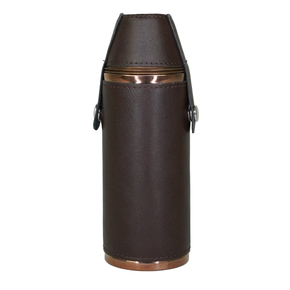 Vores 8 oz Copper Hunters Hip Flask eller Lommelærke er lavet af førsteklasses materialer med kobberfinish, denne lommelærke flaske rummer 8 flydende ounces og er pakket ind i en dybbrun PU-læderbeklædning. Med 2 kopper inkluderet.